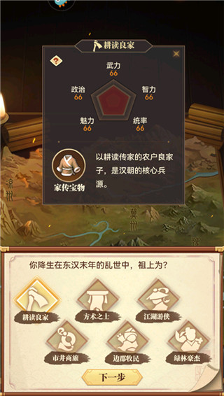 2、跳过剧情后,选择自己的出生,不同的出生属性各部相同;