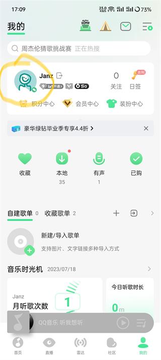 ① 打开“QQ音乐app”,进入个人主页