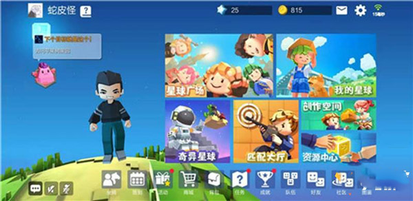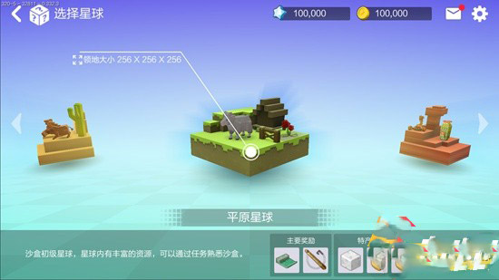 进入“我的星球”后,可以选择平原、荒野、沙漠等地形。对于初学者,建议选择新手引导推荐的平原家园。这里有木屋和各种家畜。