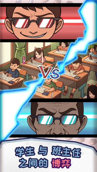 1、最具特色的中式班主任形象,地中海发型增添了真实感;2、游戏整体采用卡通漫画风格,打造出休闲轻松的游戏氛围;