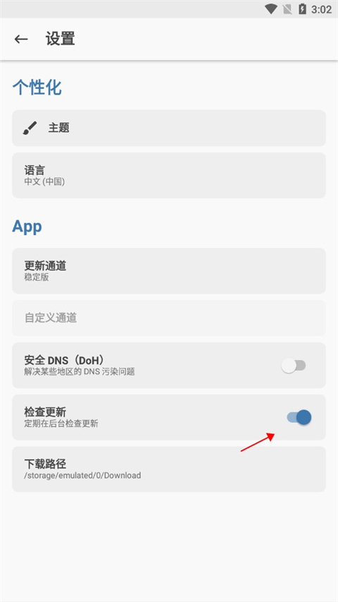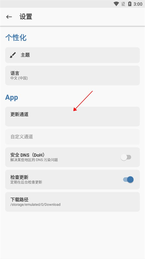 2、进入设置后,选择更新通道。