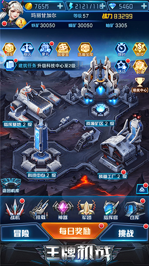 宇宙基地是资源产出中心,提供铁、铜、铀等资源,用于升级基地建筑和科技,增强战力BUFF。装备工厂中还可以打造高品质装备,为你的战机提供强大的支持。