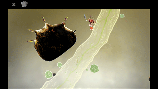 2、进入第一关,有一个靠着四支羽毛飞行的不知名生物三支羽毛被吹散了,我们需要帮助他找到丢失的羽毛。
