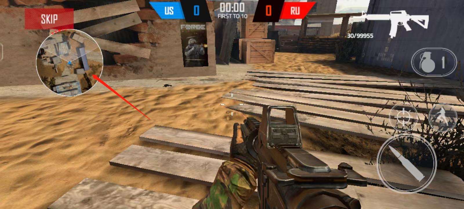 3、利用地图上的红点来定位敌人,并积极寻找和消灭;