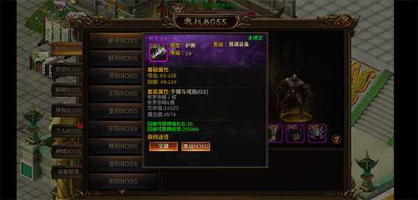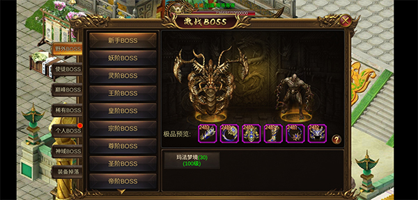 神域boss:极高几率爆出高级装备。