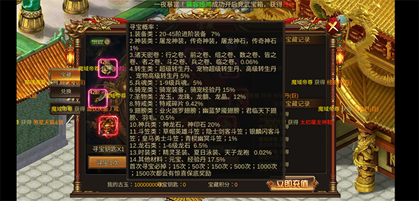 在参与寻宝时,以下是你需要注意的寻宝几率: