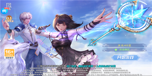 1、进入游戏之后选择区服然后勾选用户协议,点击开始游戏