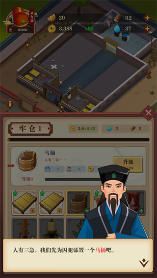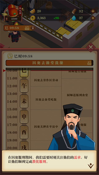 建设监狱,管理犯人,升级牢房、澡堂、劳作区与食堂,提供正常的生活环境,升级厨房、洗衣房、杂物间和狱卒房,改善官吏们的工作环境。