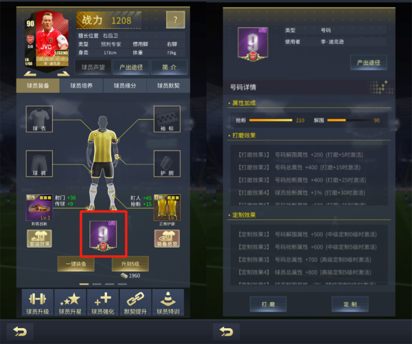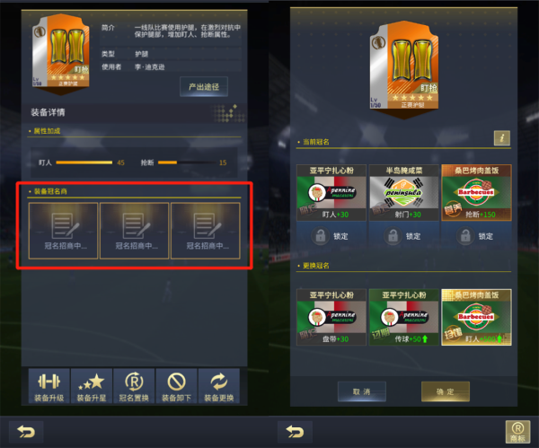号码不仅是球员的标志,更是他们在场上风采的象征。现在,你可以为你的球员选择专属号码。在装备界面,点击人物下方方框即可设定号码,需要心仪的号码道具和专属证明进行合成,并可选择符合自己的属性。这些材料可通过巅峰对决玩法获取。
