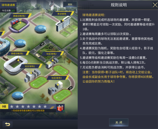 球场邀请赛奖励机制经过优化,成员完成比赛攒齐7颗星后,所有成员可领取宝箱,获得影子战队道具的玩家会额外获得贡献奖励。
