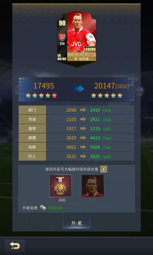 球员升星上限提升至15星,需消耗高级精英之证进行星级提升。