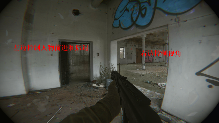 2、游戏加载完成后进入地图。游戏中,滑动屏幕左侧可控制角色前进和后退,右侧滑动则调整视角;