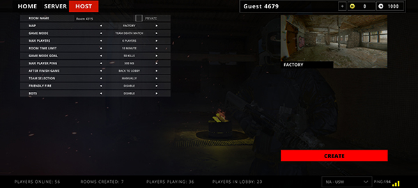 1、下载并安装好游戏,进入游戏后点击“host”创建房间。