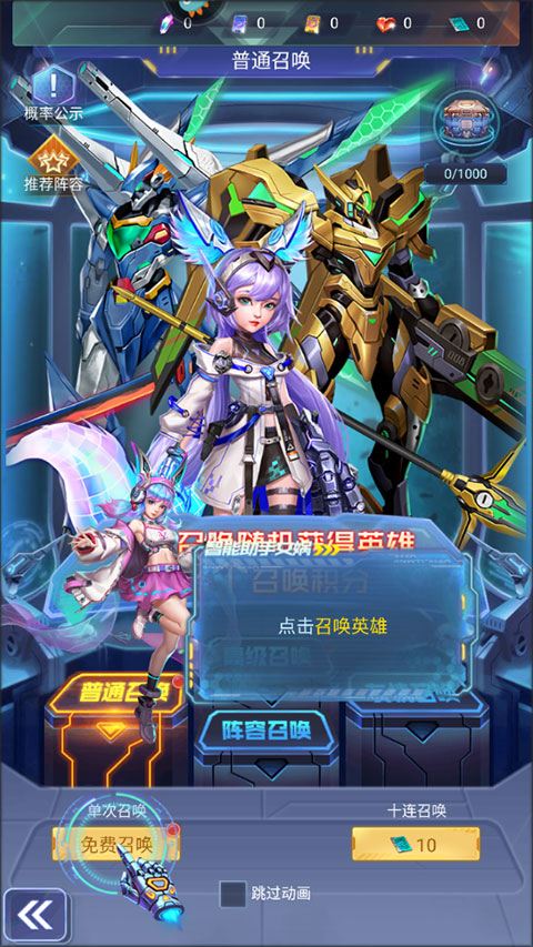 2、进入游戏后点击召唤英雄进行队伍集结。