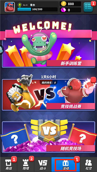 8、进入【活动界面】,包括“新手训练营”、“竞技挑战赛”、“随机竞技场”等不同的活动可以选择参加