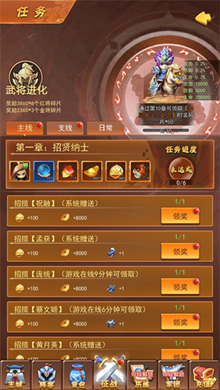 6、任务板块中分为主线、支线和日常任务,完成即可免费获得相应的奖励