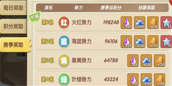 (4)每个赛季结束时,会根据势力排名发放赛季奖励。