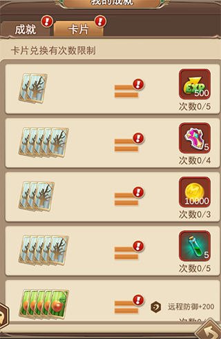 在闯关过程中掉落的卡片可以在章节地图的成就栏中兑换所需材料,这对于新手玩家来说是必不可少的升级手段。记住,新手升级必刷,这点非常重要。