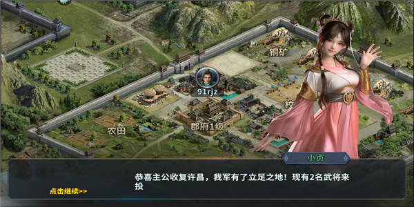 不仅如此这款大战国手游还有着内政系统,你需要不断升级农田、校场、铜矿、郡府来增加自己的粮草、人口、金币等资源,通过使用这些资源来完成对于武将的升级,同时也能够升级军威来提升所有武将的战斗力,逐渐成长成一位可以称霸一方的存在!