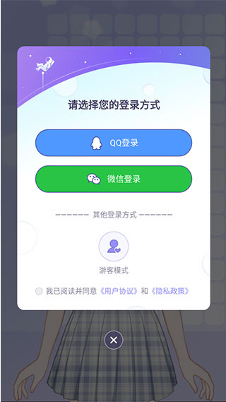 打开游戏,选择登录方式,支持QQ、微信和游客登录