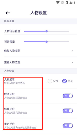 若对角色形象有所不满,可依次点击“我的”-“人物设置”,进行人物调整:任务显示、触碰反应、摇晃反应等。