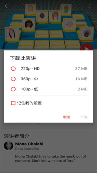 2、找到自己感兴趣需要下载的TED演讲,点击进入详情页,点击下载图标;