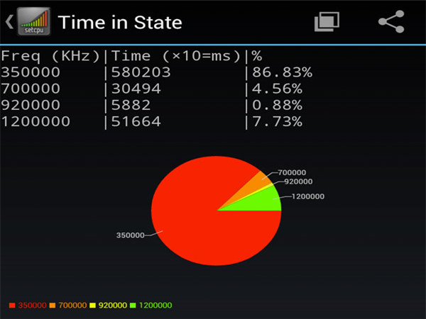 菜单顶部的文本显示当前CPU设置。这可能并不总是匹配滑块或CPU调控器选择器。大CPU频率显示将根据您选择的调控器和CPU负载而变化。