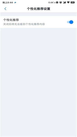 2、在设置页面中找到个性化推荐设置选项,点击后进入个性化推荐设置界面。