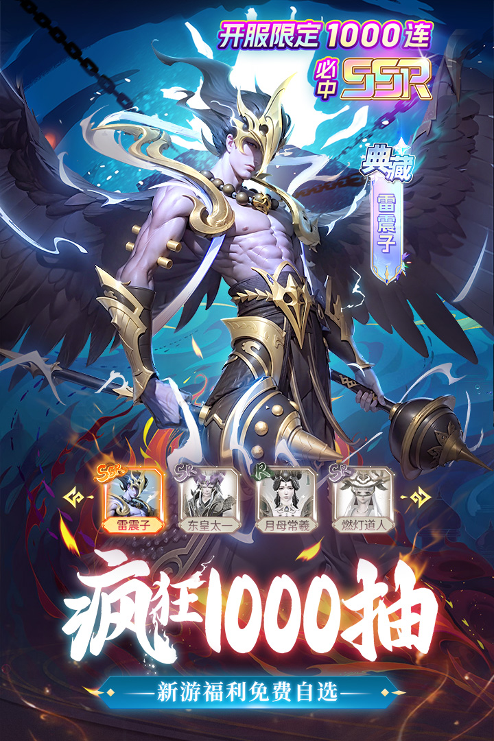 9、疯狂千抽 从角色等级10级起,角色每升5级都会获得三次随机抽卡三选一奖励来选取玩家所需要的英雄(有几率会出如瘟神、神女娲等极品英雄)