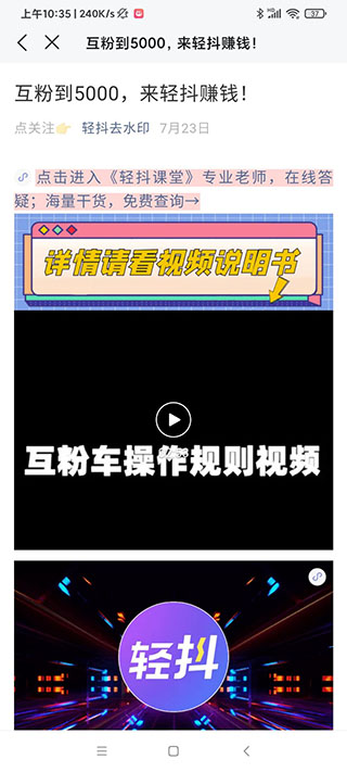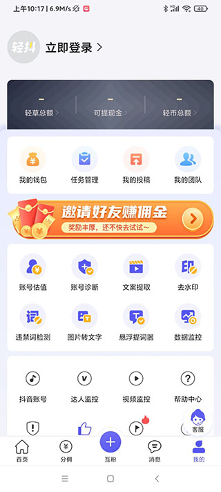 轻抖是目前一款很火的抖音工具,有各种创作工具。当然这不是重点,我们这里的重点是这款APP的加粉、涨粉、互粉、引流,以及赚钱的功能。现在玩抖音的人非常非常的多,抖音的流量也是非常的巨大。很多人在上面发各种工作、生活相关的视频。因为也造就了很多人非常在意账号的权重、粉丝数、视频曝光量等。