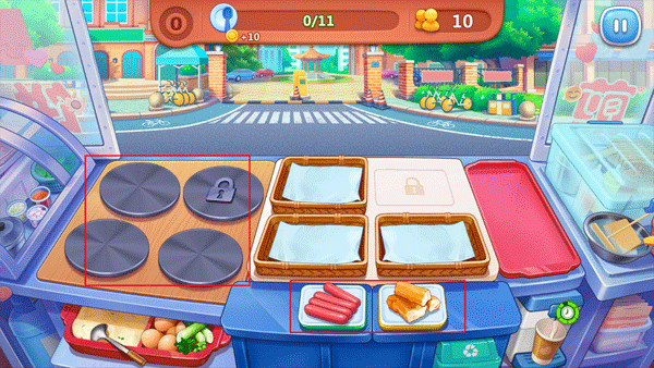 2、根据客人口味制作煎饼,注意忍耐值不要超时。