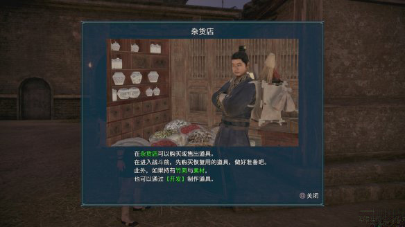 - 杂货店:购买、出售和开发回复、狩猎、钓鱼等道具。开发需竹简和素材。