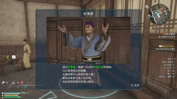 - 好事家:狩猎动物可获得狩猎点数,以点数从好事家处兑换道具、古币等奖励。