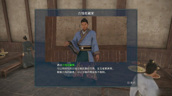 - 古币收藏家:使用古币兑换武器竹简、宝玉、家具等。古币通过狩猎点数、战场、击杀盗贼头目、钓鱼等方式获取。
