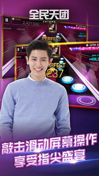 全民天团最新版2024也称为SUPERSTAR SMTOWN,是一款获得EXO CHANYEOL代言的顶级音乐类手游。这款游戏以其多样化的玩法著称,允许你收集代言明星的卡片,通过搜集卡片来解锁你喜欢的明星歌曲。在游戏中,你可以选择PK或闯关模式来进行音乐表演,需准确按照音乐节奏敲击屏幕。你搜集的明星卡牌拥有不同的等级和技能,卡牌等级越高,技能越强,这些技能可以在音乐表演中帮助你减缓节奏,让演奏更加流畅。作为一款音乐游戏,全民天团最新版2024在背景音乐的选择上特别采用了EXO的经典曲目,同时在游戏细节上融入了关于EXO的元素,加上卓越的音乐效果,为玩家创造了极致的游戏氛围。