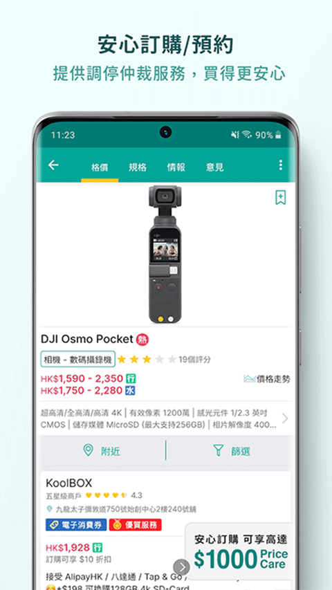 通过「安心订购」购买带原厂保养的货品,可享额外6个月的「PriceCare」维修补偿,最高可达1600元,为您的购物增加保障。软件还配备即时通讯功能,随时与商家沟通,购物更轻松、更安心。