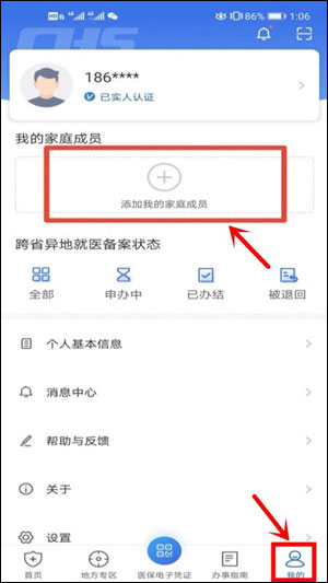 1、登录中国医疗保障app最新版后,完成实名认证并绑定个人账户,选择添加家庭成员。