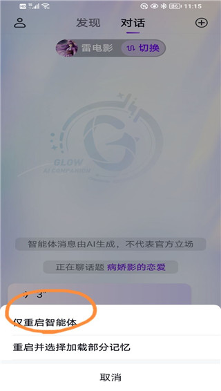 2、点击之后就会弹出一个提示,我们点击这个【仅重启智能体】