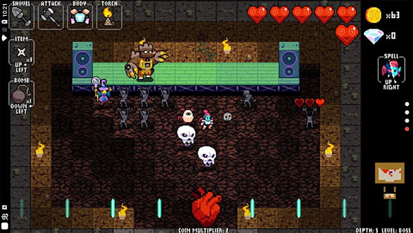 此外,该游戏以音乐和节奏元素为核心,玩家需在音乐节拍中与怪物战斗、避开陷阱。这种独特的玩法设计不仅富有创意,也增加了挑战性。节奏地牢以复古像素画风为主,细腻的像素场景和角色设计为玩家带来独特的视觉享受。同时,每个角色的不同音乐主题和随动作变化的配乐,使玩家在游戏中尽享音乐之美。总体而言,节奏地牢安卓版不仅继承了端游的经典玩法,还加入了适合移动端的新元素和丰富内容,为喜欢rouglelike类型游戏的玩家提供了全新的冒险体验。