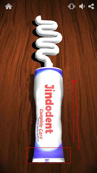 4、在游戏中,页面展示一支牙膏,从上向下挤压。牙膏逐渐增多,带来减压效果,用完后可重新开始;