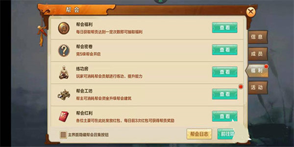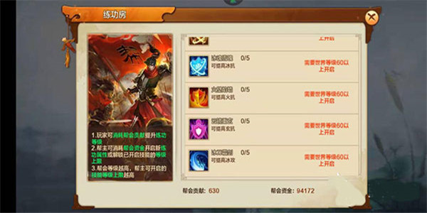 第二种方法就是在帮派中学习技能,点开帮会功能,选择福利选项,在其中找到帮会练功房,里面有所有可以在帮会中学习的技能,在技能栏的最后一个就是可以增加角色冰攻的冰刀霜剑。