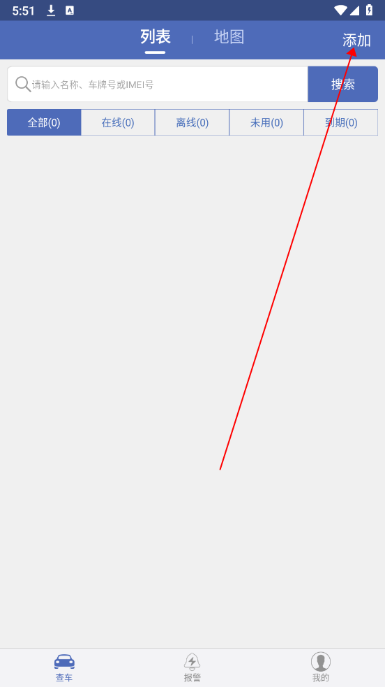 1、打开汽车在线gps定位平台,选择下方“爱车”选项,点击右上角添加按钮。