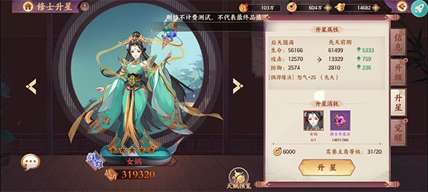 修士升星需要使用升星石,这些可以在商店购买或通过日常的混沌boss战斗获取。星塔空间也提供升星石,但数量较少。一星需要一个本体,二星两个本体,三星四个本体,目前测试的最高级别是六星。