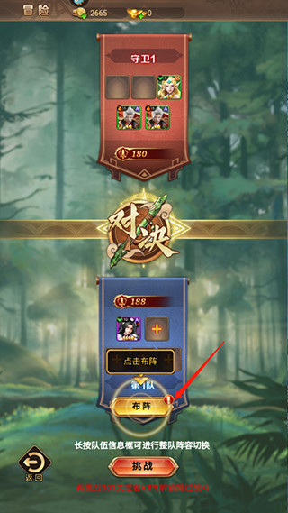 2、首先需要布阵,点击布阵;