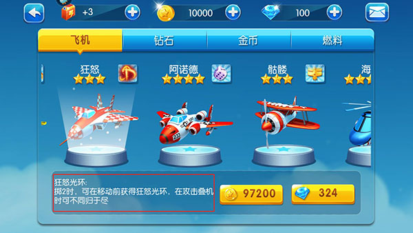 3、每种飞机不仅有独特的造型,还拥有不同的技能。例如,狂怒飞机拥有特殊的狂怒光环,能在特定条件下增强攻击力;