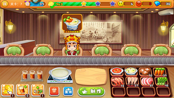 4、通过满足顾客要求,制作出色香味俱全的火锅,提升玩家的经营乐趣。