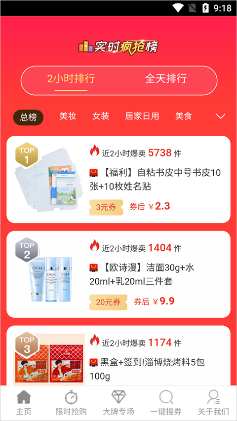 1、打开之后进入app主页面,然后选择“一键搜券”选项。