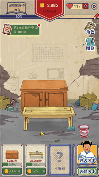 3、游戏中的经营环节,通过放置式的玩法产生资源,玩家可不断装饰和升级自家房屋。