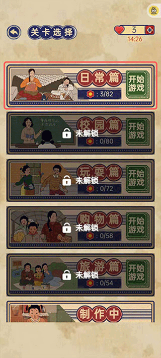 然后选择想要查看的章节,如“日常篇”,点击开始游戏