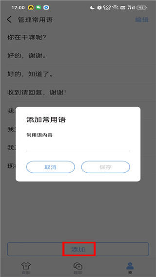 5、在管理常用语页面中添加你的常用语,就设置好了快捷短语,以后打字的时候就可以直接进行使用了。